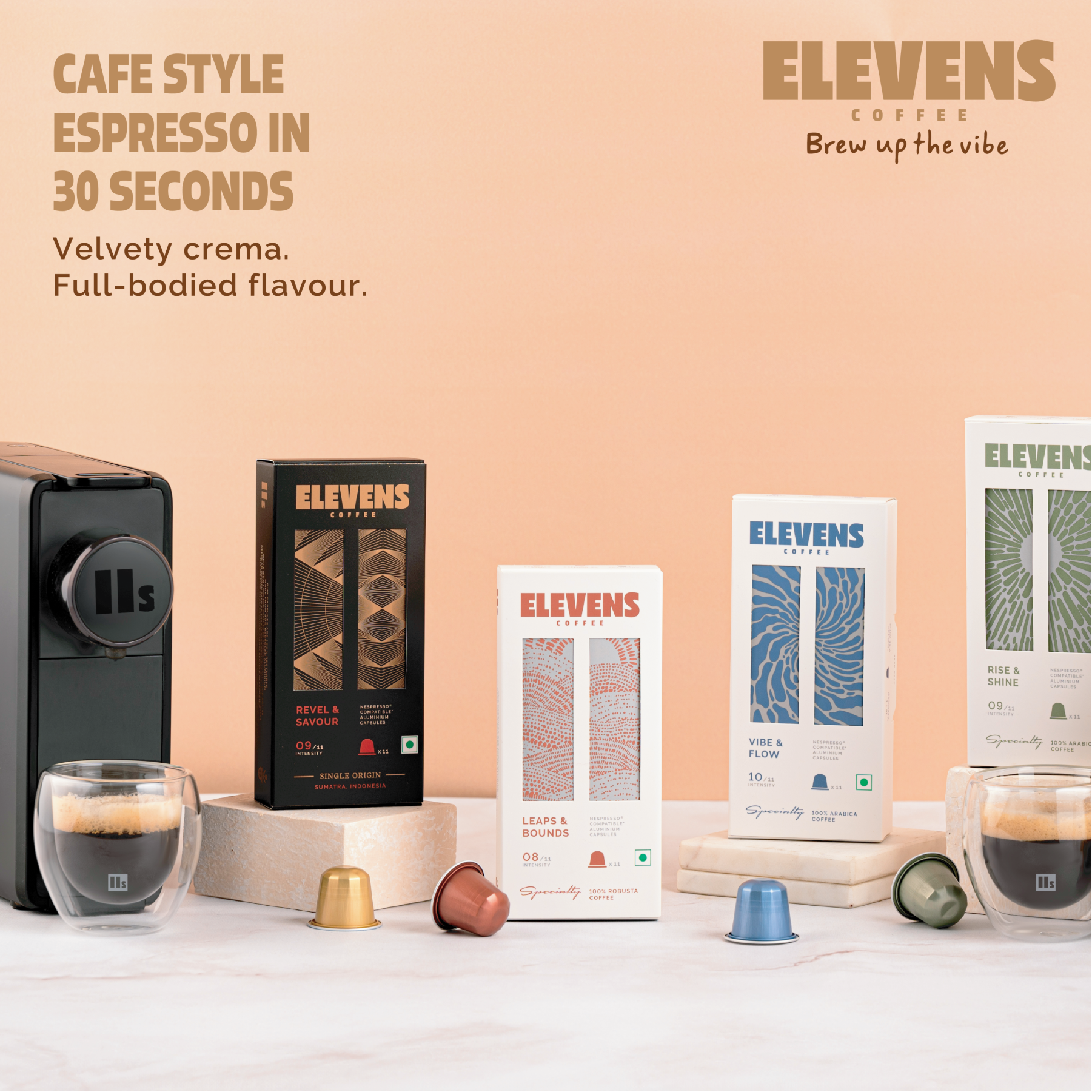 PREMIUM COMBO – SPECIALITY SERIES: Experience all three of our signature blends – Vibe & Flow (100% Arabica, Intensity 10), Rise & Shine (100% Arabica, Intensity 9) and Leaps & Bounds (100% Robusta, Intensity 8) in one exclusive pack.